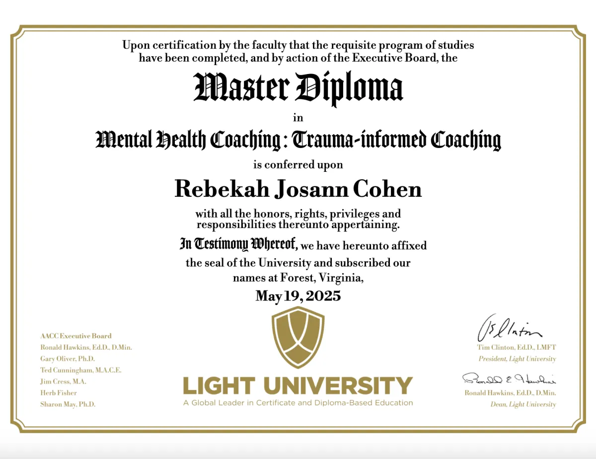 Today, I help individuals and families tackle life’s hardest seasons through trauma-informed, faith-based coaching and advocacy. My mission is simple — to walk with you as you rediscover your identity, build resilience, and find peace and purpose again. I look forward to meeting you and cannot wait to get started!